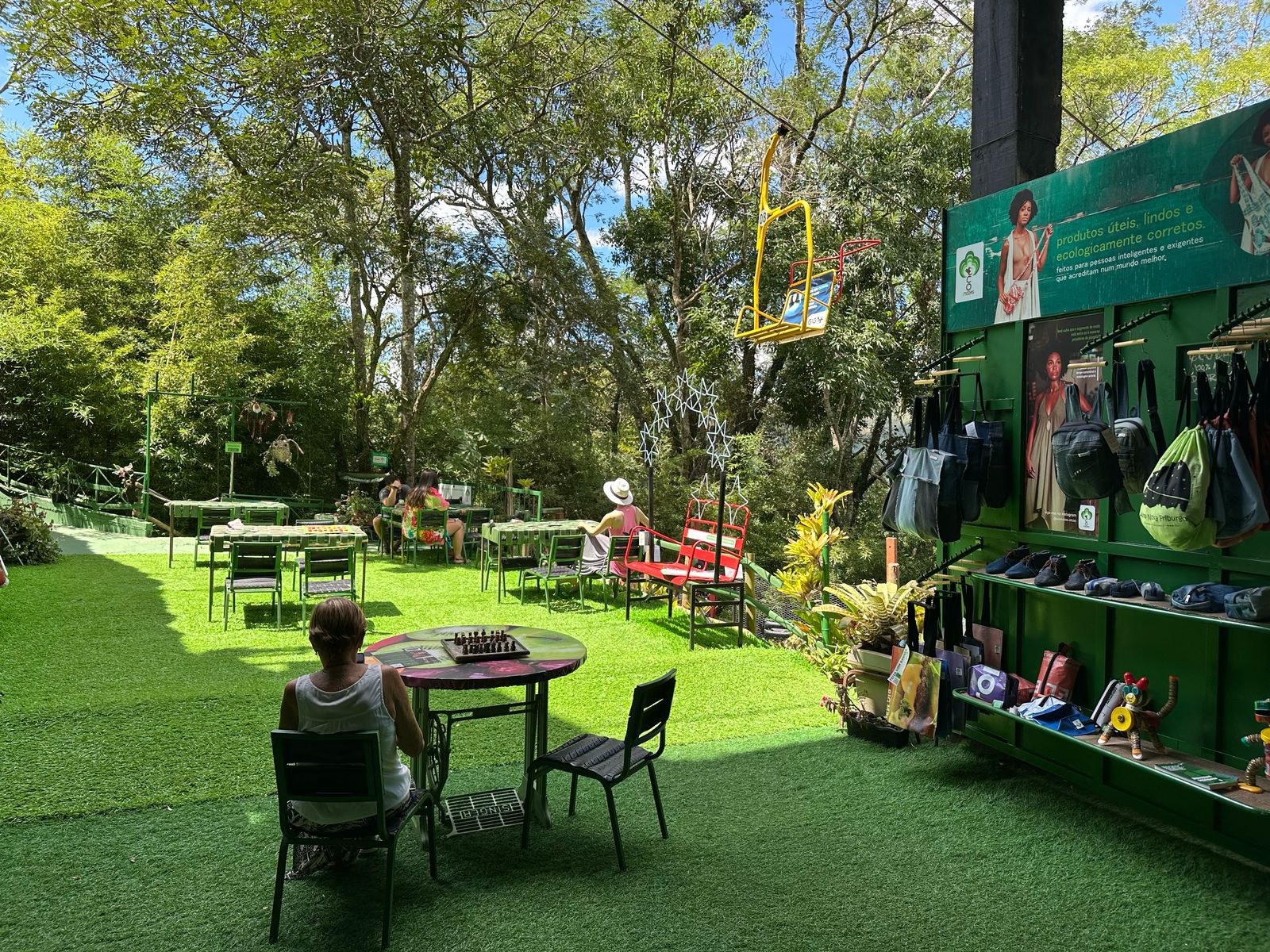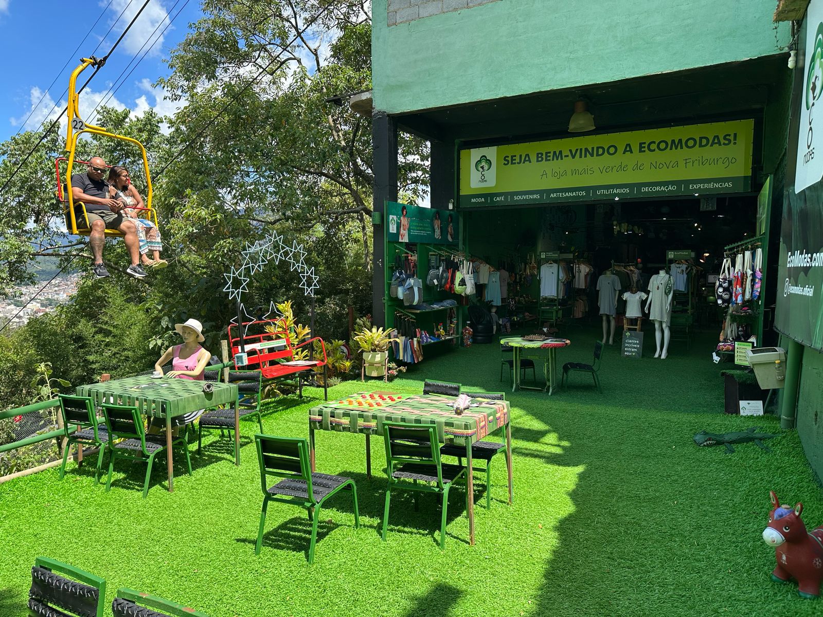 Nesse espaço ecológico localizado no alto do teleférico, o público vivencia na prática conceitos como economia circular, ecodesign e produção responsável, além de ter acesso a produtos como souvenirs, roupas e acessórios sustentáveis. A loja também funciona como vitrine para cerca de 15 pequenos artesãos de Nova Friburgo, contribuindo para o fortalecimento da economia local.