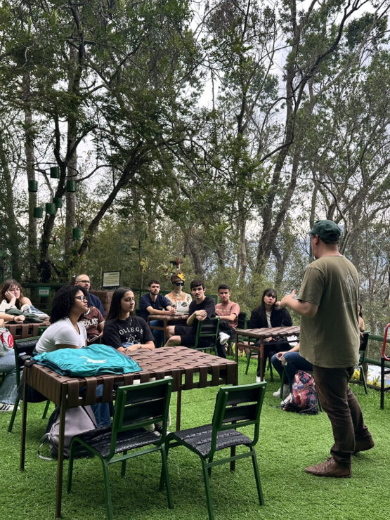 Realização de visitas pedagógicas, palestras em escolas e atividades educativas com turistas e moradores, integradas a ações de educação ambiental que promovem a sensibilização para a conservação da natureza, o fortalecimento da consciência ecológica e o engajamento ativo da comunidade na proteção da biodiversidade local.