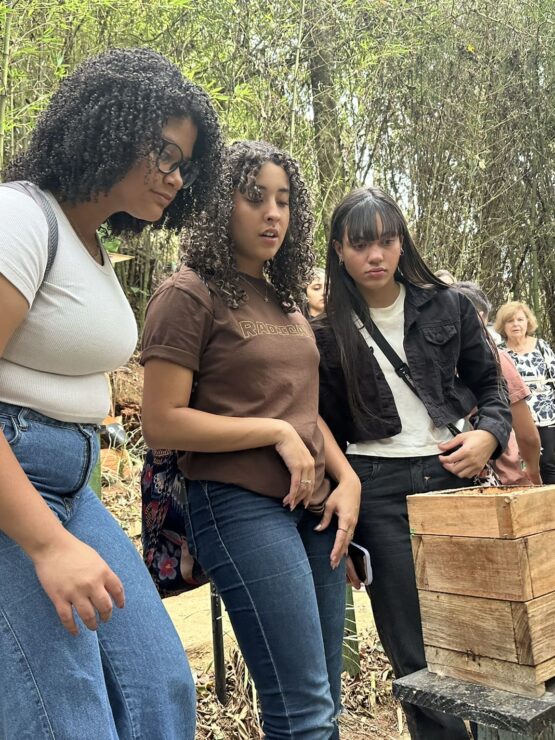 A experiência inclui a degustação de mel de abelhas nativas sem ferrão, a observação dos diferentes modelos de caixas utilizadas no manejo, a apresentação dos tipos de atrativos empregados nas iscas, entre outros aprendizados práticos sobre a atividade.
